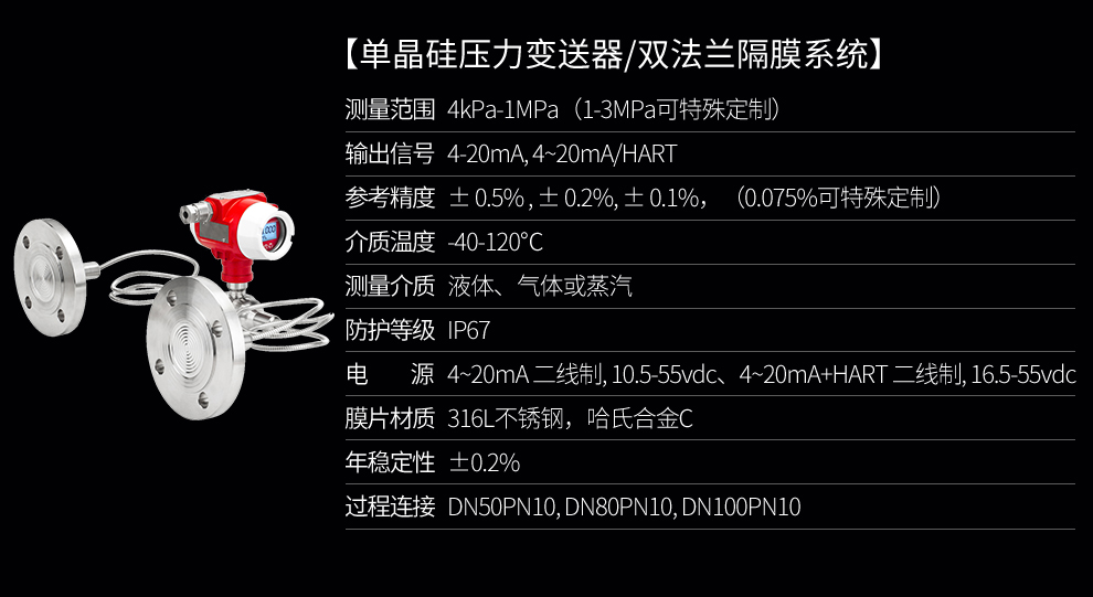 SIN-2051DP雙法蘭差壓液位變送器是一種為避免被測(cè)介質(zhì)直接作用于變送器的遠(yuǎn)傳隔離膜片接觸而采用的差壓式變送器(結(jié)構(gòu)測(cè)量法)。