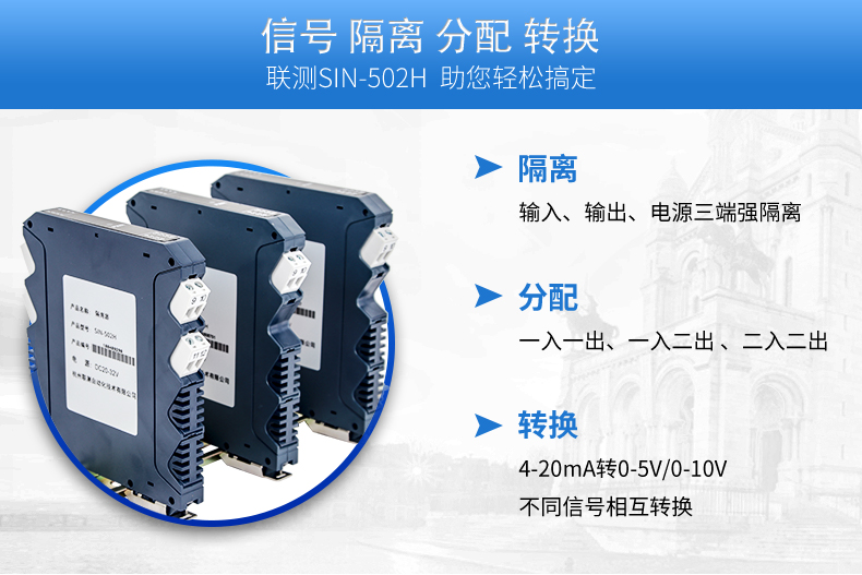 信號隔離器是一種信號隔離裝置,將輸入單路或雙路電流或電壓信號,變送輸出隔離的單路或雙路線性的電流或電壓信號,并提高輸入、輸出、電源之間的電氣隔離性能。