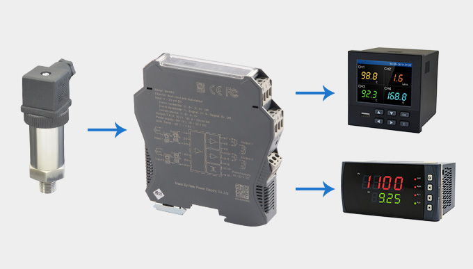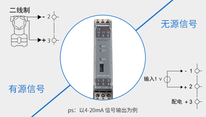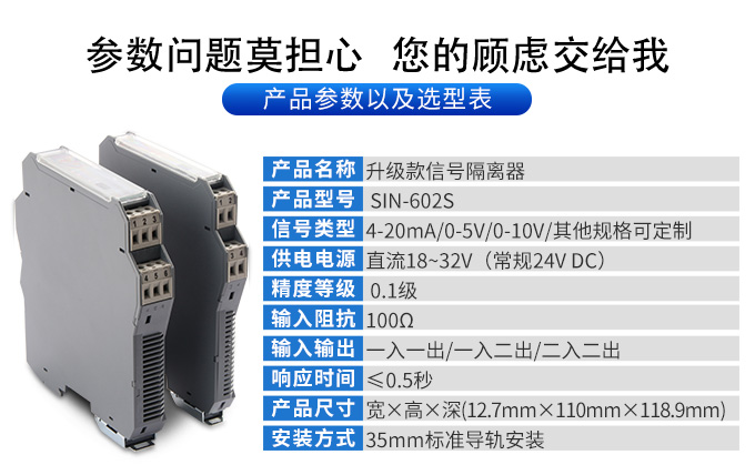 新款隔離器可向變送器提供隔離的工作電源,同時檢測回路中的電流,經隔離變送輸出電流或電壓信號。 輸入端、輸出端及電源端三端隔離,具有響應快、功耗低、溫度特性好等優點。
