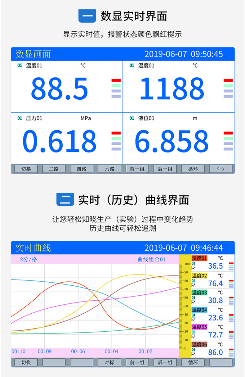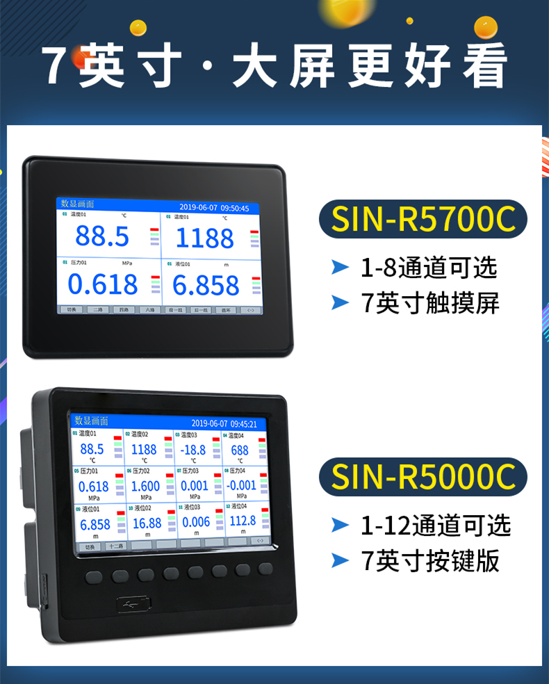 SIN-R5700C觸摸超薄無紙記錄儀采用新型大規(guī)模集成電路,對輸入、輸出、電源、信號采取可靠保護(hù)和強(qiáng)抗干擾設(shè)計。8路萬能信號輸入(可組態(tài)選擇輸入:標(biāo)準(zhǔn)電壓、標(biāo)準(zhǔn)電流、熱電偶、熱電阻、毫伏等)。可帶4路報警輸出,1個饋電輸出,RS485通訊接口,以太網(wǎng)接口,微型打印機(jī)接口和USB接口,SD卡插座;具有強(qiáng)大的顯示功能,實(shí)時曲線顯示,歷史曲線追憶,棒圖顯示,報警狀態(tài)顯示。