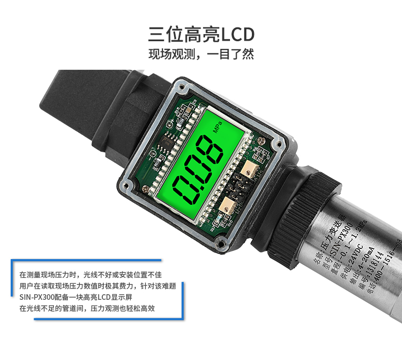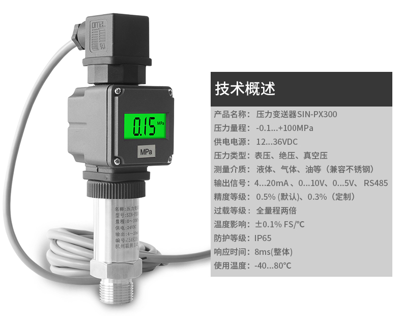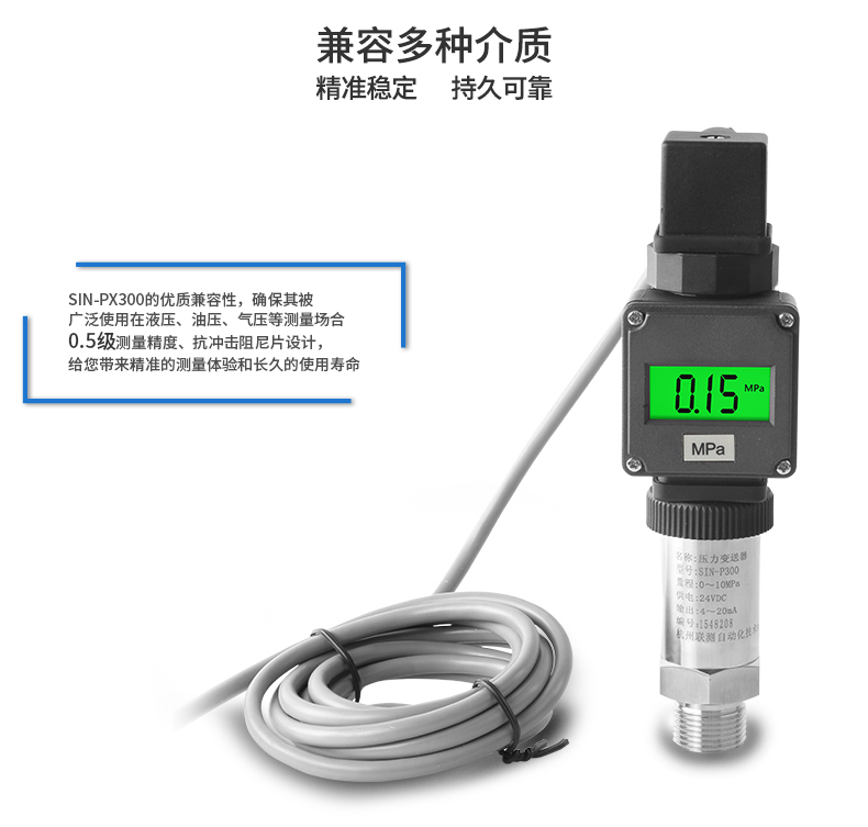 SIN-PX300型數(shù)顯壓力變送器采用無(wú)縫焊接結(jié)構(gòu),可批量化生產(chǎn),經(jīng)濟(jì)、可靠,具有良好的適應(yīng)性,可應(yīng)用于各種復(fù)雜的環(huán)境,該產(chǎn)品輸出形式多樣,壓力接口可提供定制,滿(mǎn)足您的使用需求。同時(shí)數(shù)顯壓力變送器帶有現(xiàn)場(chǎng)顯示功能,能夠更加直觀的顯示現(xiàn)場(chǎng)的壓力波動(dòng)情況。廣泛應(yīng)用于工業(yè)自動(dòng)化設(shè)備配套以及石油、化工、冶金、電力等控制領(lǐng)域。