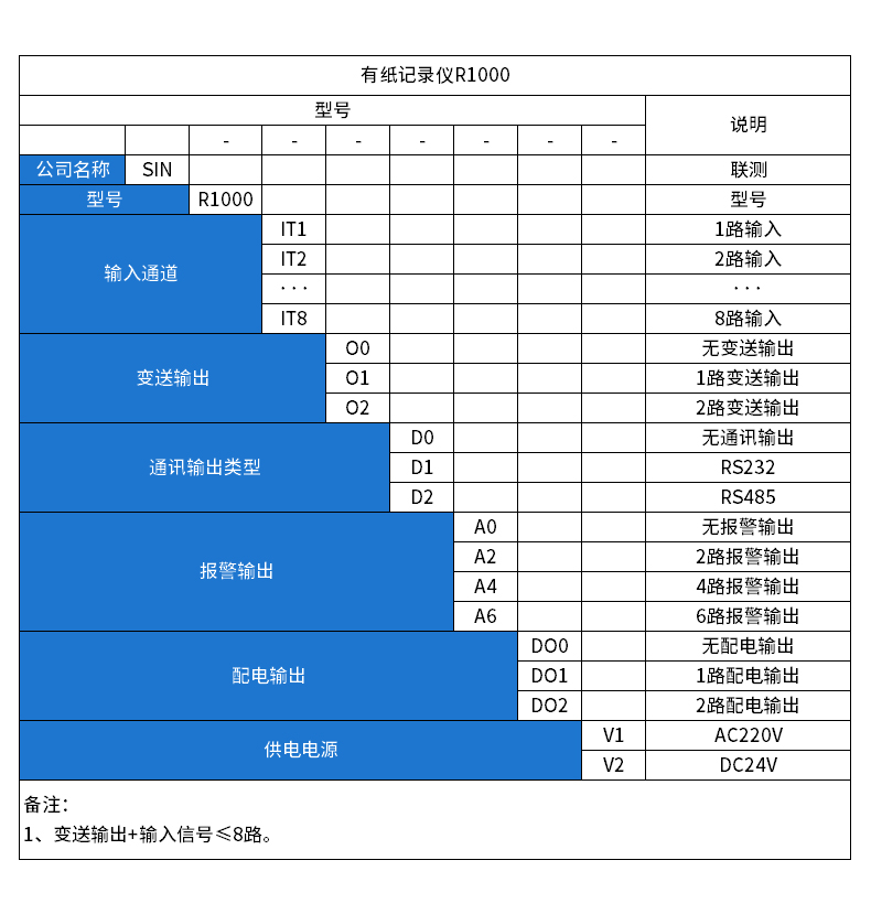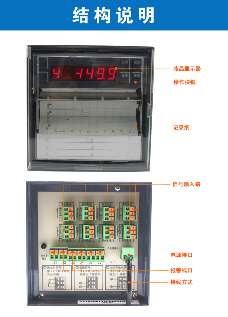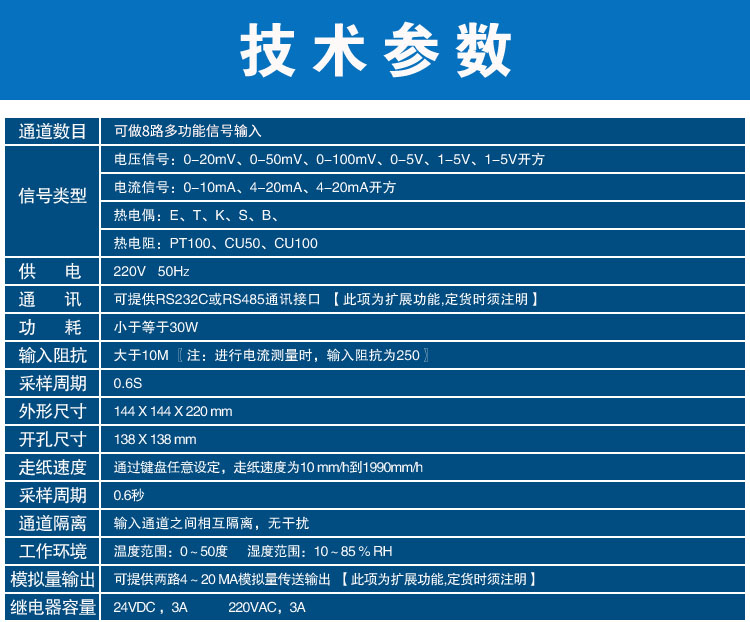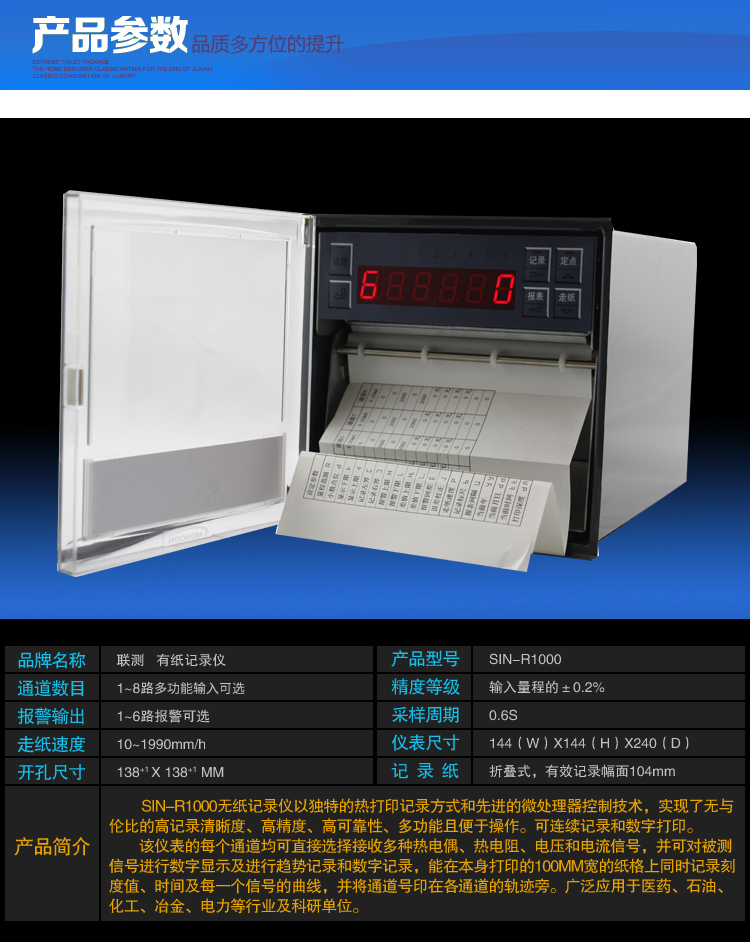 SIN-R1000有紙溫度記錄儀最多具有8路輸入通道,2路模擬量輸出,通道之間采用點(diǎn)點(diǎn)隔離;均可直接選擇接收多種熱電偶、熱電阻、壓力變送器、電壓、電流信號(hào),并可對(duì)被測信號(hào)進(jìn)行數(shù)字顯示及進(jìn)行趨勢(shì)記錄和數(shù)字記錄,能在本身打印的120mm寬的紙格上同時(shí)記錄刻度值、時(shí)間及每一個(gè)信號(hào)的曲線,并將通道號(hào)印在各通道的軌跡旁。